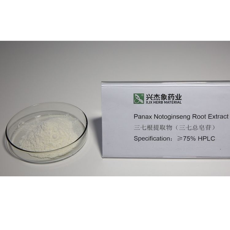- 三七總皂苷,從五加科植物三七的干燥根及根莖中提取精制而成。外觀呈淡黃色至淺棕黃色的粉末,氣微,味苦而后微甜。具吸濕性,需密封于陰涼干燥處保存。易溶于水、甲醇和乙醇,在乙醚中幾乎不溶,主要成分為多種皂苷類化合物。