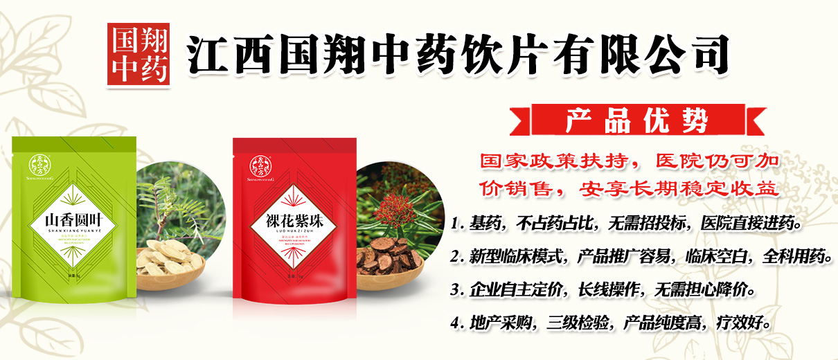 江西國(guó)翔中藥飲片有限公司位于藥都樟樹(shù)市,是一家集研發(fā)、生產(chǎn)、加工、銷售、服務(wù)于一體的現(xiàn)代化中藥飲片企業(yè)。公司產(chǎn)品涵蓋精致小包裝飲片、精制飲片、直接口服飲片、食品級(jí)組合代用茶等1000多個(gè)品規(guī),其中精致小包裝飲片,產(chǎn)品齊全,是該領(lǐng)域優(yōu)勢(shì)廠家之一,暢銷全國(guó),眾多院線的優(yōu)選。