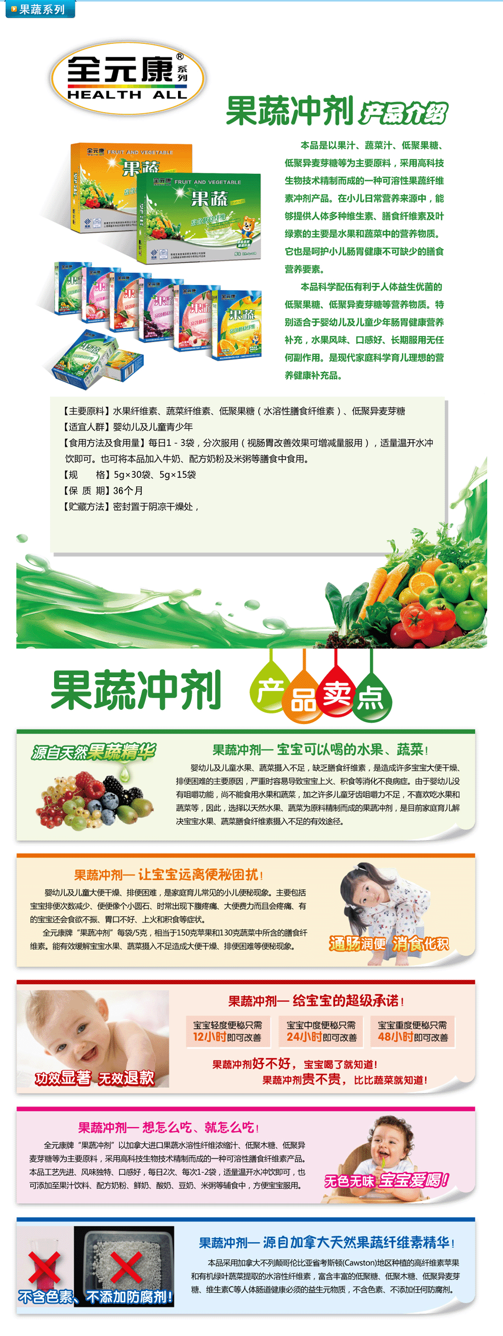 | 【產(chǎn)品用途】 | 本品是以果汁、蔬菜汁、低聚果糖、低聚異麥芽糖等為主要原料,采用高科技生物技術(shù)精制而成的一種可溶性果蔬纖維素沖劑產(chǎn)品。在小兒日常營(yíng)養(yǎng)來(lái)源中,能夠提供人體多種維生素、膳食纖維素及葉綠素的主要是水果和蔬菜中的營(yíng)養(yǎng)物質(zhì)。它也是呵護(hù)小兒腸胃健康不可缺少的膳食營(yíng)養(yǎng)要素。 |