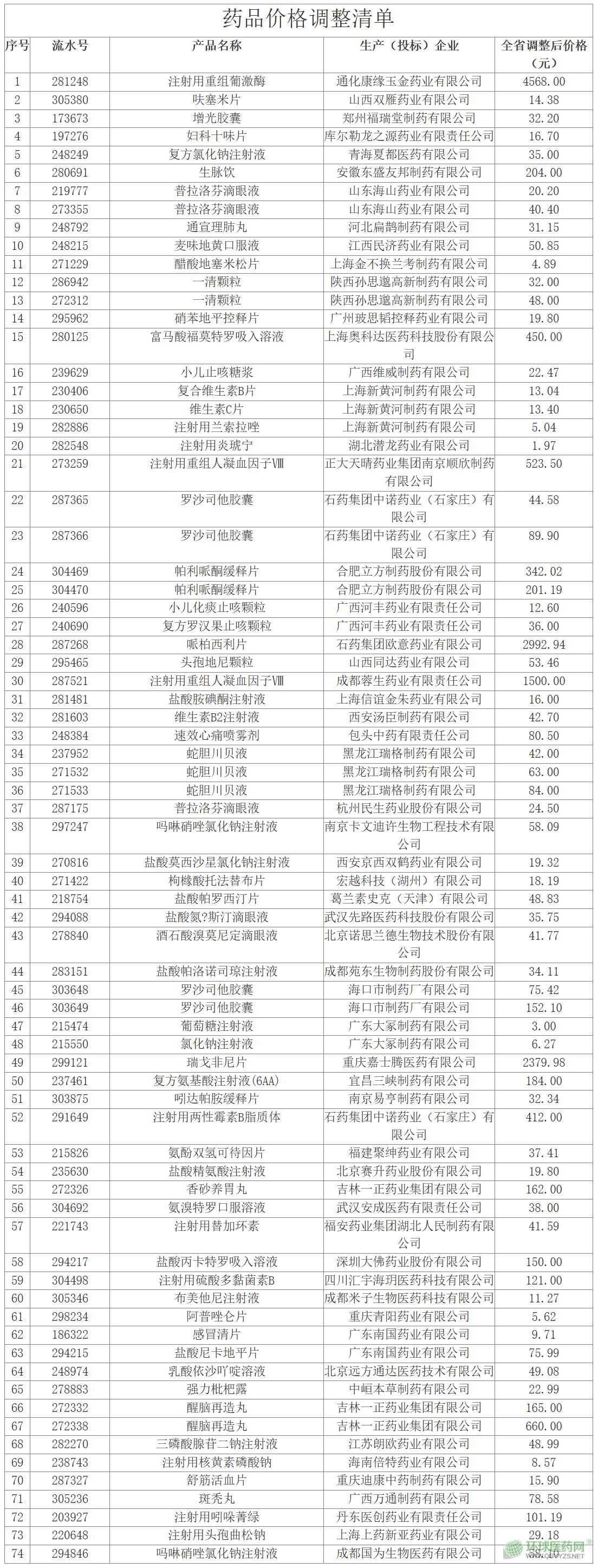 省公共資源交易中心收到通化康緣玉金藥業(yè)有限公司等企業(yè)投標的74個藥品產品在遼寧省主動降價的申請,根據《關于進一步完善藥品集中掛網采購工作的通知》,同意上述產品掛網采購價格進行調整(詳見附件),全省所有醫(yī)療衛(wèi)生機構于10月01日起執(zhí)行新的掛網采購價格。降價產品設置采購過渡期,時間為1周。
