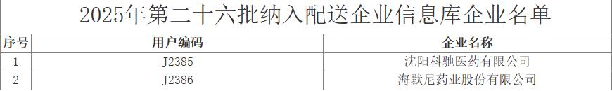 附表:2025年第二十六批納入配送企業(yè)信息庫企業(yè)名單