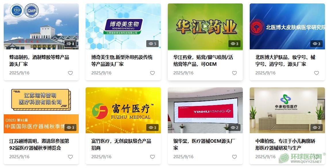 近期,環(huán)球醫(yī)藥網(wǎng)又上線了視頻招商板塊,醫(yī)藥企業(yè)可發(fā)布短視頻,進行產(chǎn)品及企業(yè)宣傳。