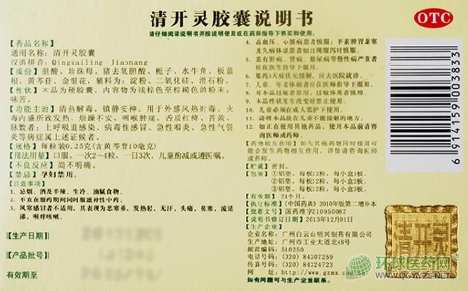 廣州白云山明興清開靈膠囊說明書圖片版(2010年版)