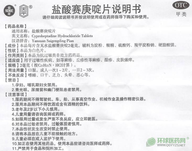 上海信誼鹽酸賽庚啶片說(shuō)明書(shū)圖片版
