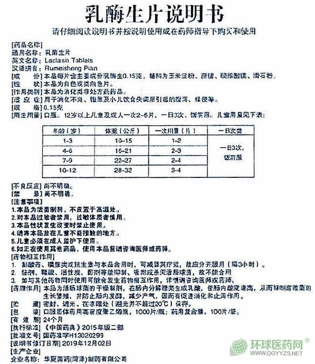 [成份] 本品每片含主要成份乳酶生0.15克。輔料為淀粉、白砂糖、硬酯酸鎂、滑石粉。