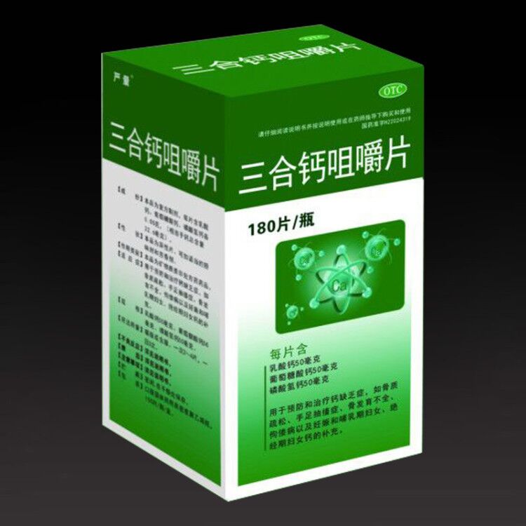 一款名為三合鈣咀嚼片的藥品在預(yù)防和治療鈣缺乏癥