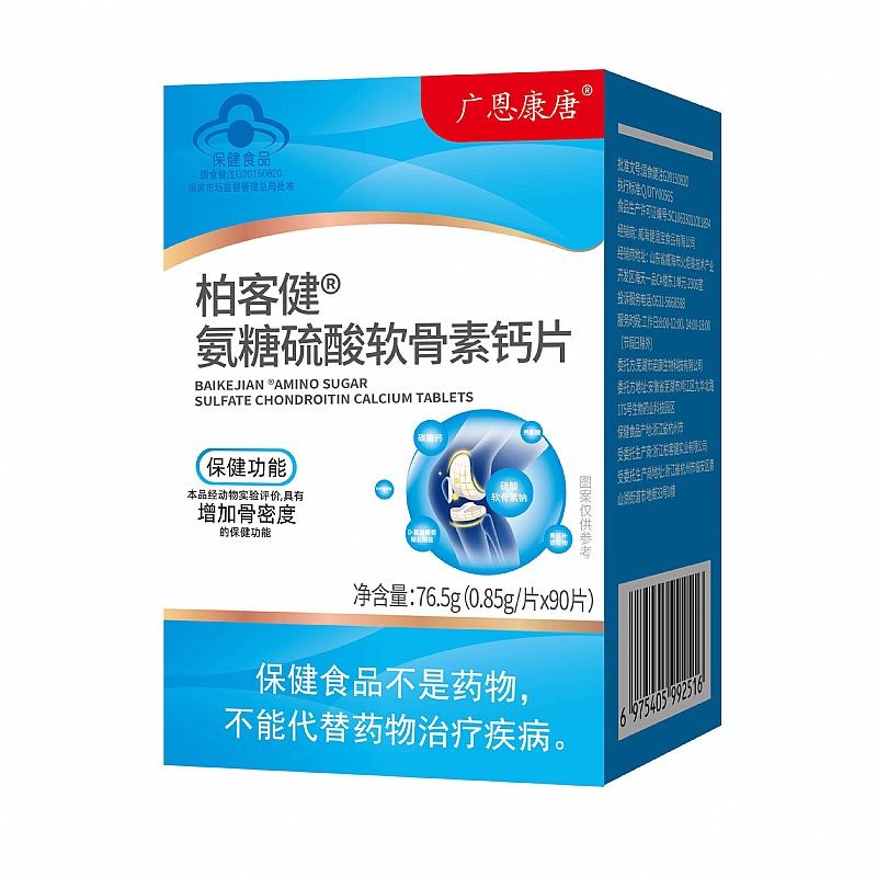 主要成分:[原料]D-氨基葡萄糖鹽酸鹽、碳酸鈣、硫酸軟骨素鈉、電仲提取物、黨寡糖、骨碎補(bǔ)提取物