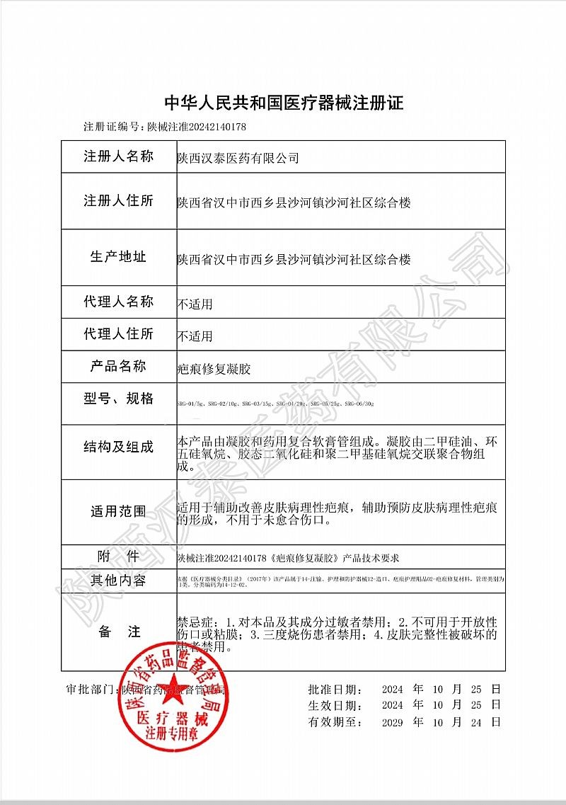 產(chǎn)品用途:適用于輔助改善皮膚病理性疤痕,輔助預(yù)防皮膚病理性疤痕的形成,不用于未愈合傷口。