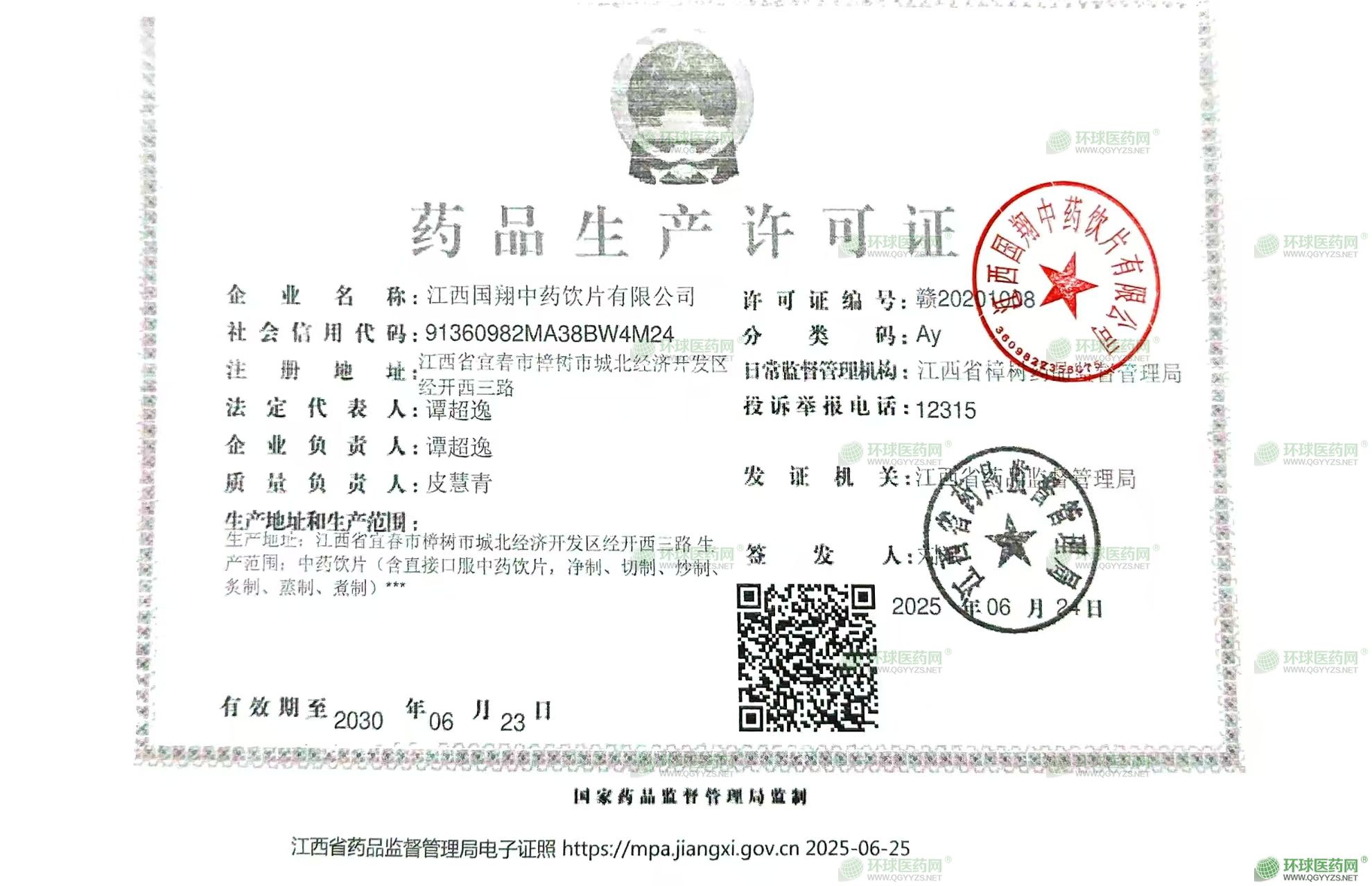 發(fā)證機關(guān): 江西省藥品監(jiān)督管理局