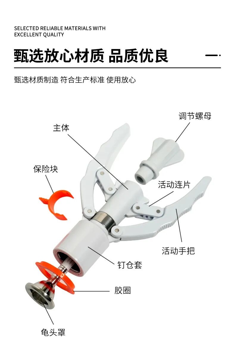 切割吻合一體化:采用鈦合金吻合釘與環(huán)形切割刀同步作用,實現(xiàn)“切割+吻合”一步完成,避免傳統(tǒng)手術(shù)刀反復切割導致的組織損傷,手術(shù)時間縮短,出血量**減少。