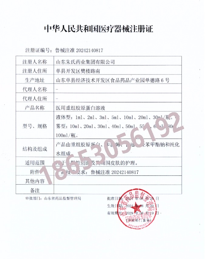 醫(yī)用重組膠原蛋白溶液添新證!山東朱氏藥業(yè)集團(tuán)斬獲醫(yī)療器械注冊證