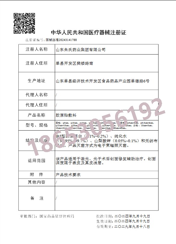 在高端醫(yī)用敷料領(lǐng)域持續(xù)突破的山東朱氏藥業(yè)集團(tuán)近日再傳喜訊,其創(chuàng)新研發(fā)的"醫(yī)用膠原貼敷料"成功獲得國家藥品監(jiān)督管理局頒發(fā)的醫(yī)用遠(yuǎn)紅外治療貼醫(yī)療器械注冊證(注冊證編號:魯械注準(zhǔn)2023xxxxxx)。這一重要資質(zhì)的取得,標(biāo)志著企業(yè)在功能性醫(yī)用敷料領(lǐng)域的技術(shù)創(chuàng)新獲得國家權(quán)威認(rèn)可,為創(chuàng)面治療提供了更專業(yè)的解決方案。