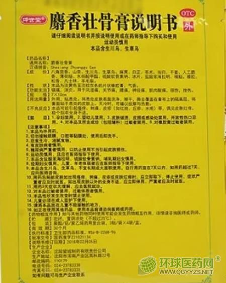 中成藥、OTC甲類、非醫(yī)保。鎮(zhèn)痛,消炎。用于風(fēng)濕痛,關(guān)節(jié)痛,腰痛,神經(jīng)痛,肌肉酸痛,扭傷,挫傷。招商廠家:安徽金馬藥業(yè)有限公司、湖北生源生物醫(yī)藥有限公司、河南博亞醫(yī)藥銷售有限公司、安徽省啟想醫(yī)藥有限公司等等。【藥品名稱】通用名稱:麝香壯骨膏