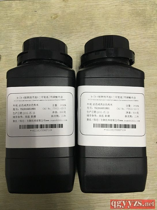 | 補(bǔ)充說(shuō)明 | ***稱(chēng):3-[3-(膽酰胺丙基)二甲氨基]丙磺酸內(nèi)鹽 英文名稱(chēng):3-[(3-cholamidopropyl)dimethylamm0nio]propanesulf0nate CHAPS 縮寫(xiě)名:CHAPS 外觀:白色或類(lèi)白色粉末 含量: ≥99* 分子式:C32H58N2SO7 分子量:614.9 CAS No.:75621-03-3 編號(hào):DYS009 |
