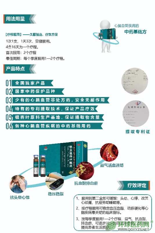 | 產(chǎn)品賣點 | 全國優(yōu)質(zhì)品種; 口感好--能喝得下去的中藥口服液; 國家中藥保護(hù)品種; 少有的心腦血管非處方藥,******; 特有的專利提取技術(shù),**產(chǎn)品療效; 銀杏葉原料生產(chǎn)基地,**藥效提取物的含量; **心腦血管疾病的中藥基礎(chǔ)藥。 |