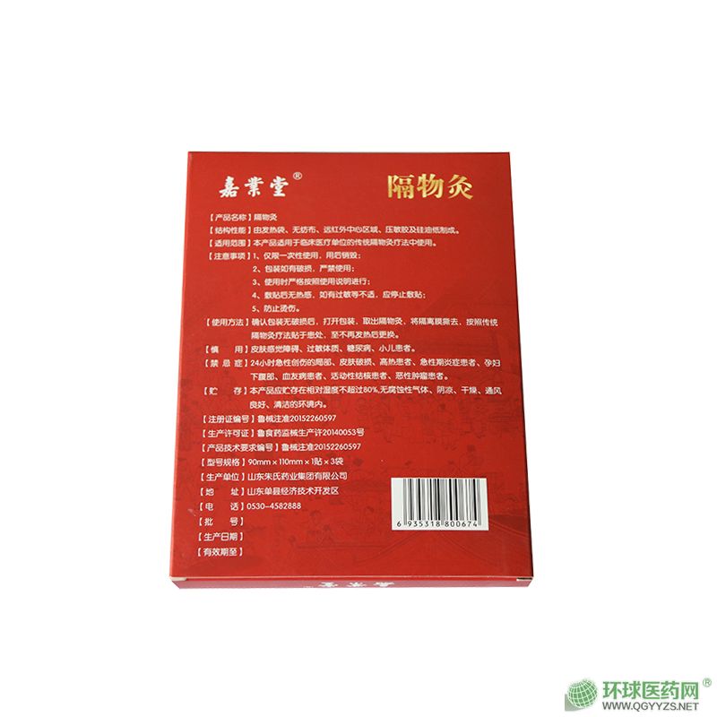 | 補(bǔ)充說(shuō)明 | 【產(chǎn)品名稱】隔物灸 【注冊(cè)證號(hào)】魯械注準(zhǔn)20152260597 【 結(jié)構(gòu)性能 】由發(fā)熱袋、無(wú)紡布、遠(yuǎn)紅外中心區(qū)域、壓敏膠及硅油紙制成。 【 適用范圍 】本產(chǎn)品適用于臨床醫(yī)療單位的傳統(tǒng)隔物灸療法中使用。 【 注意事項(xiàng) 】 1、僅限一次性使用,用后銷毀; 2、包裝如有破損,嚴(yán)禁使用; 3、使用時(shí)嚴(yán)格按照使用說(shuō)明進(jìn)行; 4、敷貼后無(wú)熱感,如有過(guò)敏等不適,應(yīng)停止敷貼; 5、防止?fàn)C傷。 【 使用方法 】確認(rèn)包裝無(wú)破損后,打開(kāi)包裝,取出隔物灸,將隔離膜撕去,按照傳統(tǒng)隔物灸療法貼于患處,至不再發(fā)熱后更換。 【 慎 用】皮膚感覺(jué)障礙、過(guò)敏體質(zhì)、糖尿病、小兒患者。 【 禁忌癥 】24小時(shí)急性創(chuàng)傷的局部、皮膚破損、高熱患者、急性期炎癥患者、孕婦下腹部、血友病患者、活動(dòng)性結(jié)核患者、惡性腫瘤患者。 【 貯 存 】本產(chǎn)品應(yīng)貯存在相對(duì)濕度不超過(guò)80%,無(wú)腐蝕性氣體、陰涼、干燥、通風(fēng)良好、清潔的環(huán)境內(nèi)。 【生產(chǎn)企業(yè)】山東朱氏藥業(yè)集團(tuán)有限公司 【規(guī)格】9cmX11cmX1貼X3袋X120盒/件 【電話】:13256635038 |