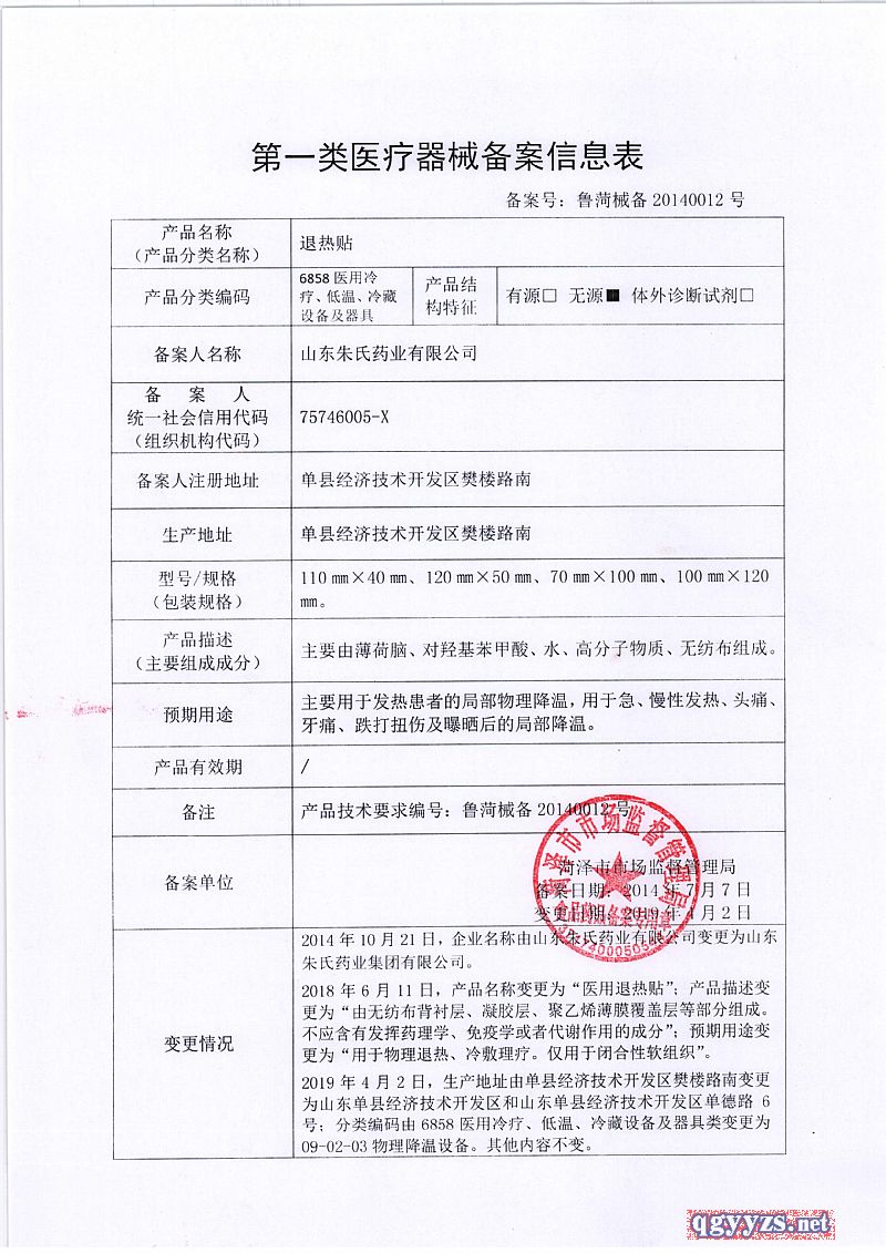 批準(zhǔn)文號(hào): 魯菏械備20140012號(hào) 【驗(yàn)證真?zhèn)?/a>】
