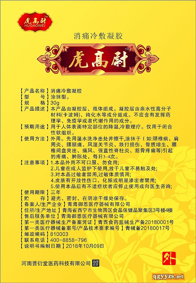 | 產(chǎn)品名稱 | 虎高尉消痛冷敷凝膠 |
