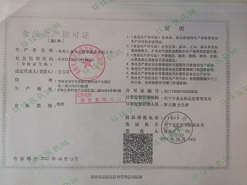 生產(chǎn)企業(yè): 青海久泰冬蟲夏草酒業(yè)有限公司