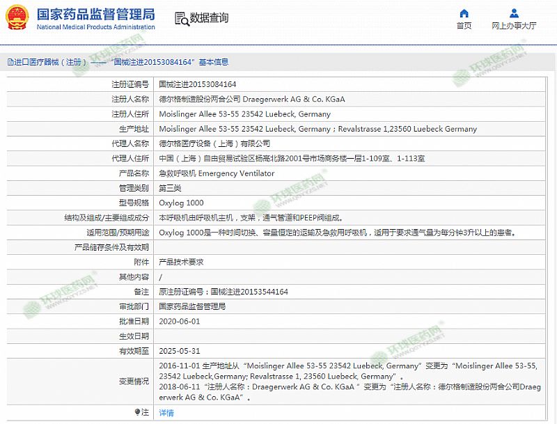 生產(chǎn)企業(yè): 德爾格制造股份兩合公司 Draegerwerk AG & Co. KGaA