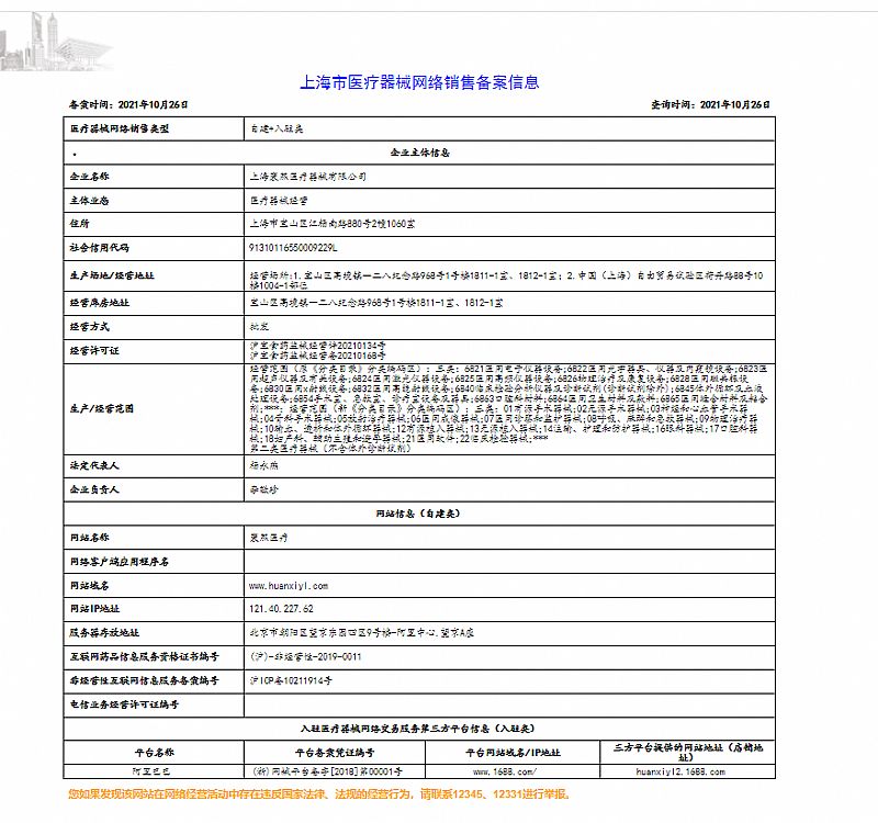 招商企業(yè): 上海寰熙醫(yī)療器械有限公司