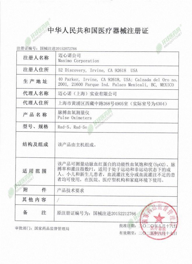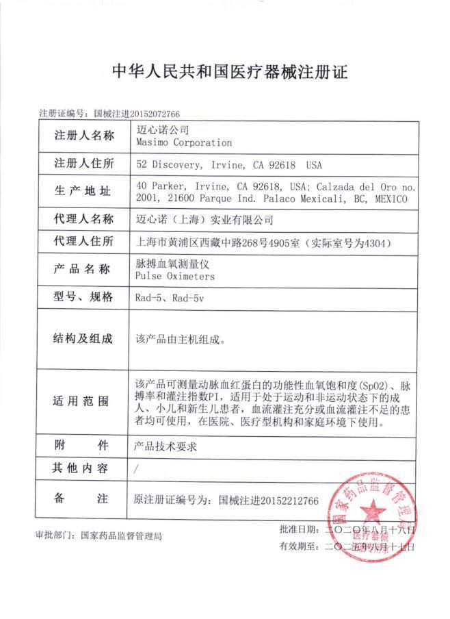 | 英文名稱 | Mai Xin Nuo pulse oximeter Rad-5 |