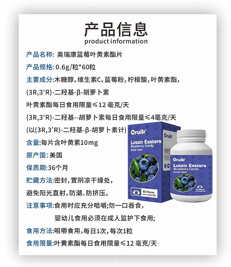 | 產(chǎn)品名稱 | 美國原裝進(jìn)口藍(lán)莓葉黃素酯片 |
