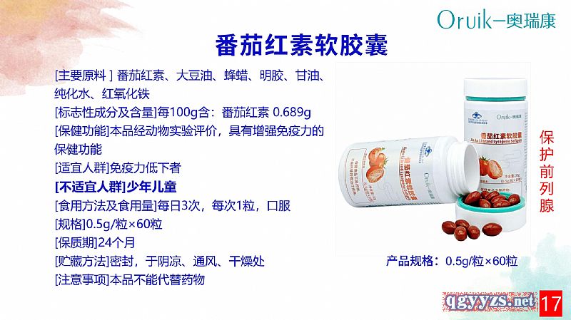 | 作用機(jī)理 | 【標(biāo)志性成分及含量】每100g含:番茄紅素580mg |