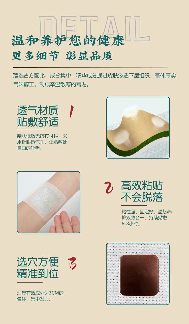 | 使用方法 | 1、清潔相應(yīng)穴位,先以拇指依次揉按相應(yīng)穴位,每穴1~2分鐘,范圍由小到大,力量由輕到重,探尋敏感點(diǎn)。2、確認(rèn)包裝無(wú)破損后,打開(kāi)包裝,取出穴位壓力刺激貼,將貼劑的隔離膜撕去,以鋼珠對(duì)準(zhǔn)相應(yīng)穴位敏感點(diǎn)貼壓,1片/穴、天,每日適度按壓3~5次,每次3~5分鐘,1個(gè)療程為10天,療程間隔2~3天。 |