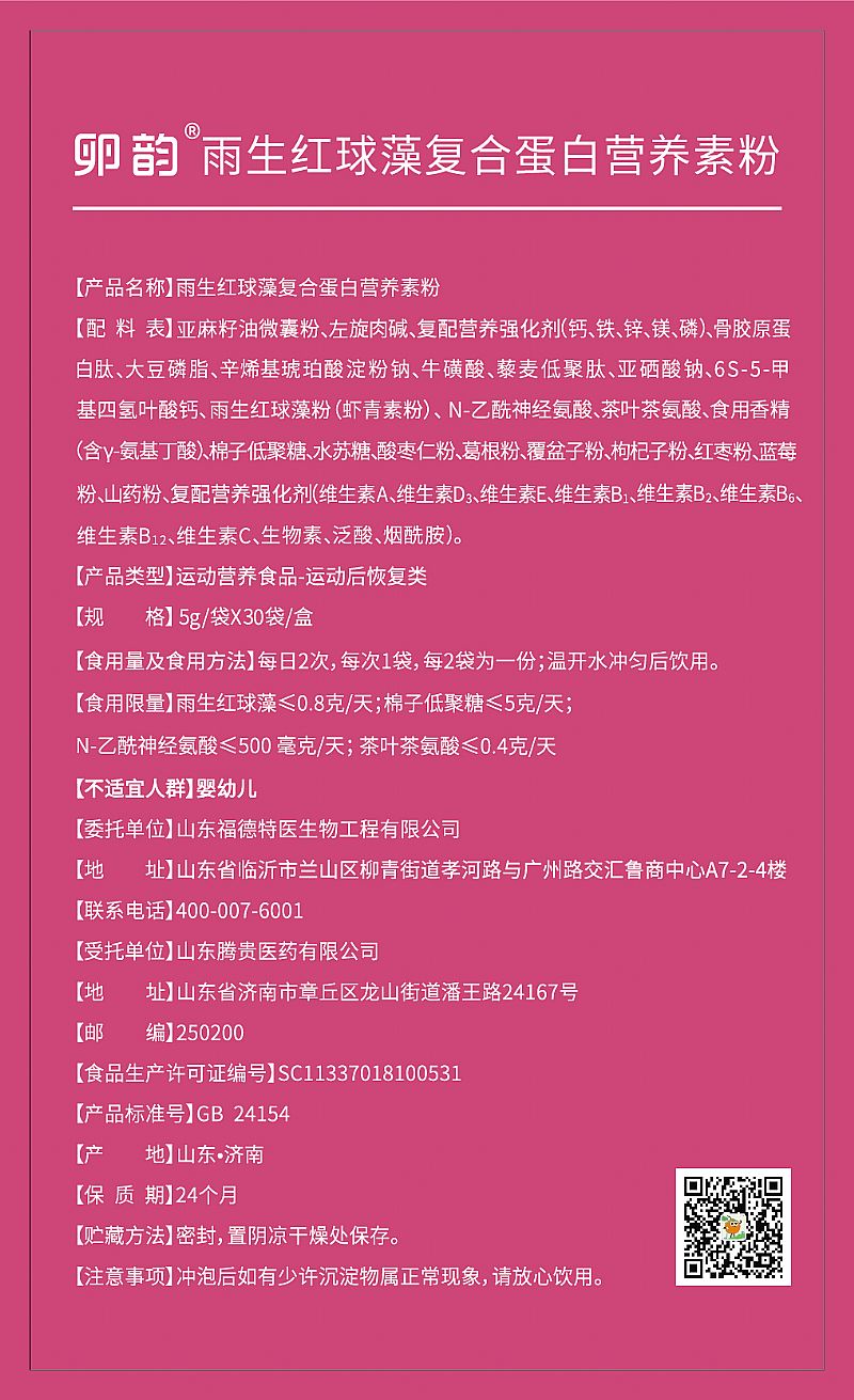 產(chǎn)品名稱: 卵韻雨生紅球藻復(fù)合蛋白營養(yǎng)素粉