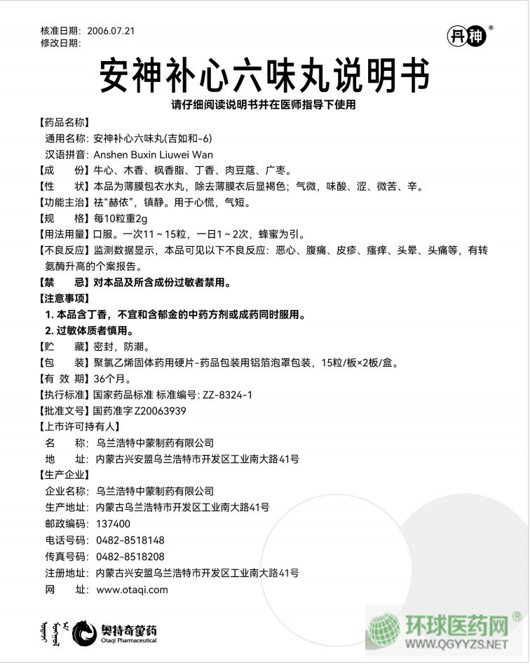 | 通用名稱 | 安神補(bǔ)心六味丸 |