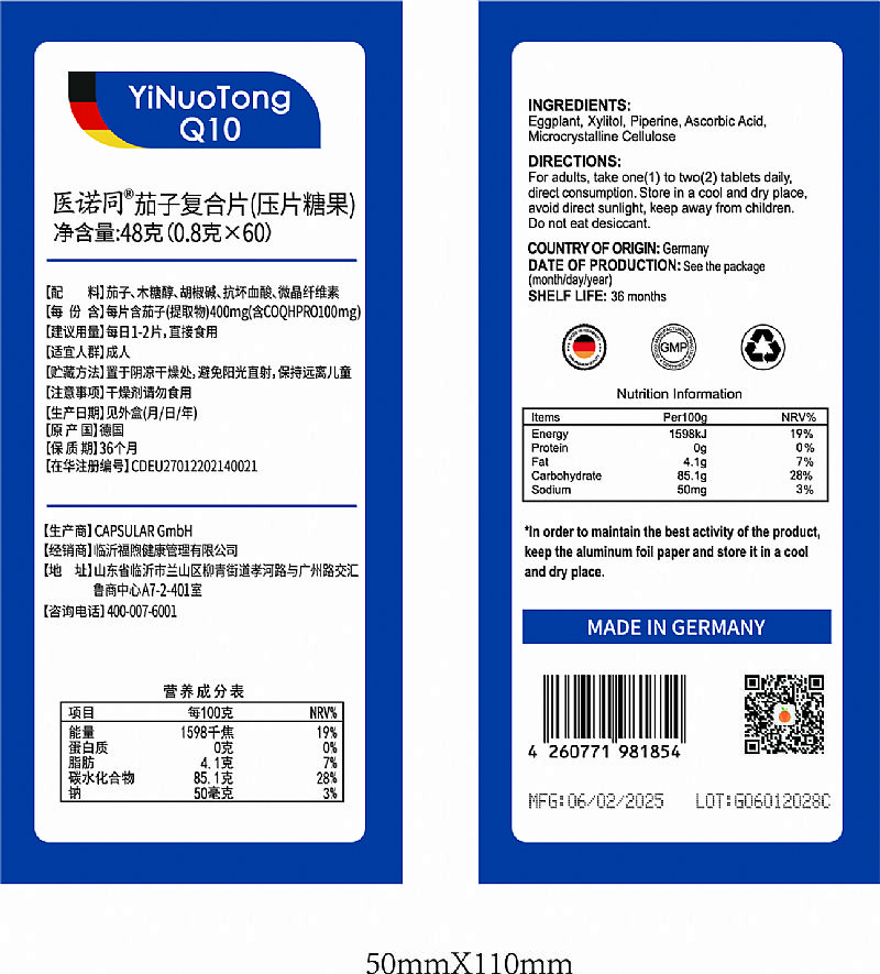 | 主要成分 | 茄子、木糖醇、胡椒堿、抗壞血酸、微晶纖維素 |