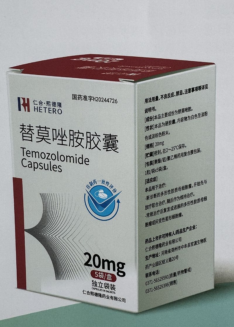 | 用法用量 | 新診斷的多形性膠質(zhì)母細(xì)胞瘤的成人患者: 1.同步放化療期:口服本品,每日劑量為75mg/m2,共42天,同時(shí)接受放療(60Gy分30次)。隨后接受6個(gè)周期的本品輔助治療。根據(jù)患者耐受程度可暫停用藥,但無(wú)需降低劑量。同步放化療期如果符合以下條件:絕對(duì)中性粒細(xì)胞計(jì)數(shù)≥1.5x109/L,血小板計(jì)數(shù)≥100x109/L,普通毒性標(biāo)準(zhǔn)(CTC)-非血液學(xué)毒性≤1級(jí)(除外脫發(fā)、惡心和嘔吐),本品可連續(xù)使用42天,最多49天。治療期間每周應(yīng)進(jìn)行全血細(xì)胞計(jì)數(shù)。2.維持治療期:本品同步放化療期結(jié)束后4周,進(jìn)行6個(gè)周期的本品輔助治療。第1周期的本品劑量是150mg/m2/日,每日一次,共5天,然后停藥23天。第2周期開始時(shí),如果第1周期CTC的非血液學(xué)毒性≤2級(jí)(除脫發(fā)、惡心和嘔吐外)、絕對(duì)中性粒細(xì)胞計(jì)數(shù)(ANC)≥1.5×109/L和血小板計(jì)數(shù)≥100×109/L,則劑量可增至200mg/m2/日。如果第2周期的劑量沒(méi)有增加,在以后的周期中也不應(yīng)增加劑量。除出現(xiàn)毒性外,以后各周期的劑量維持在每日200mg/m2。 |