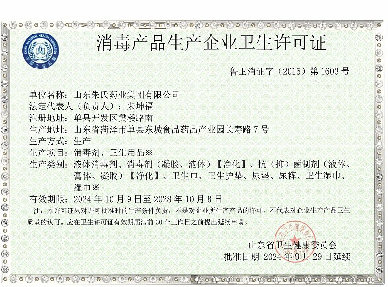 批準(zhǔn)文號: 魯衛(wèi)消證字2015第1603號