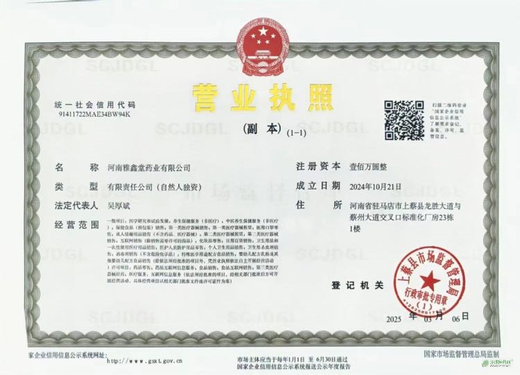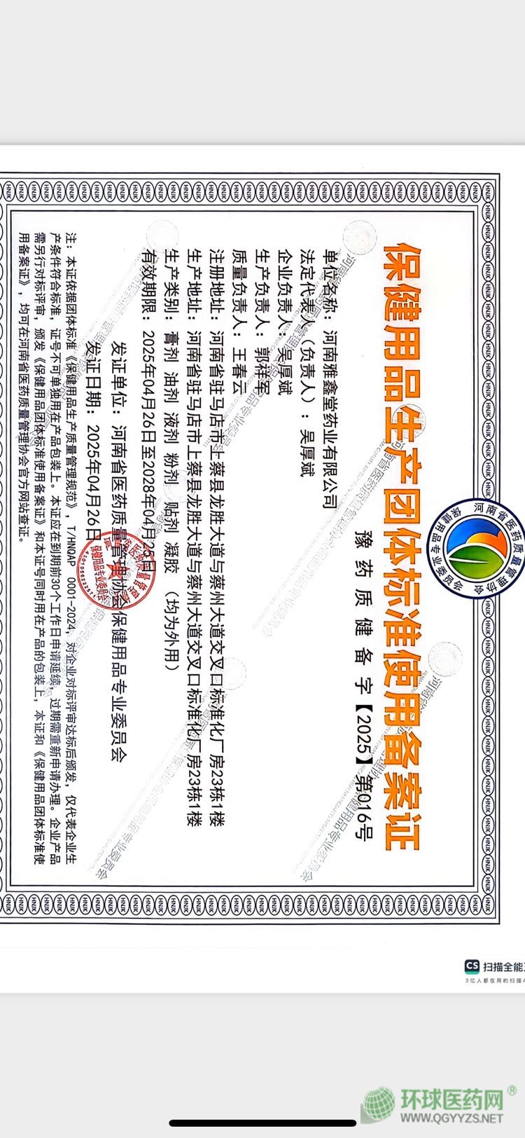 生產(chǎn)企業(yè): 河南雅鑫唐藥業(yè)有限公司