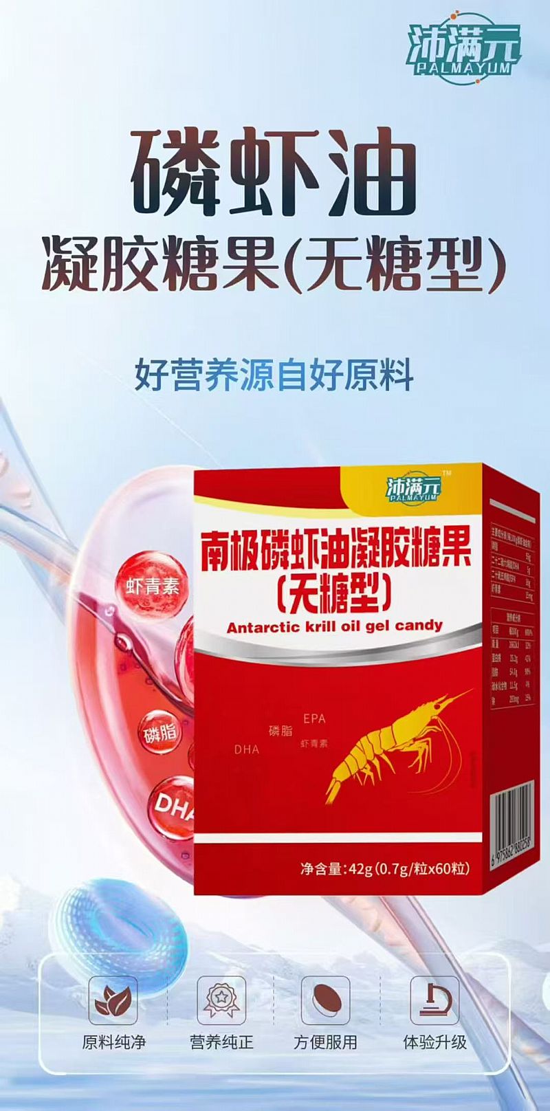南極磷蝦油凝膠糖果(無(wú)糖型)
