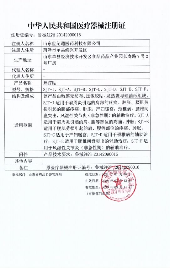 生產企業(yè): 山東世紀通醫(yī)藥科技有限公司