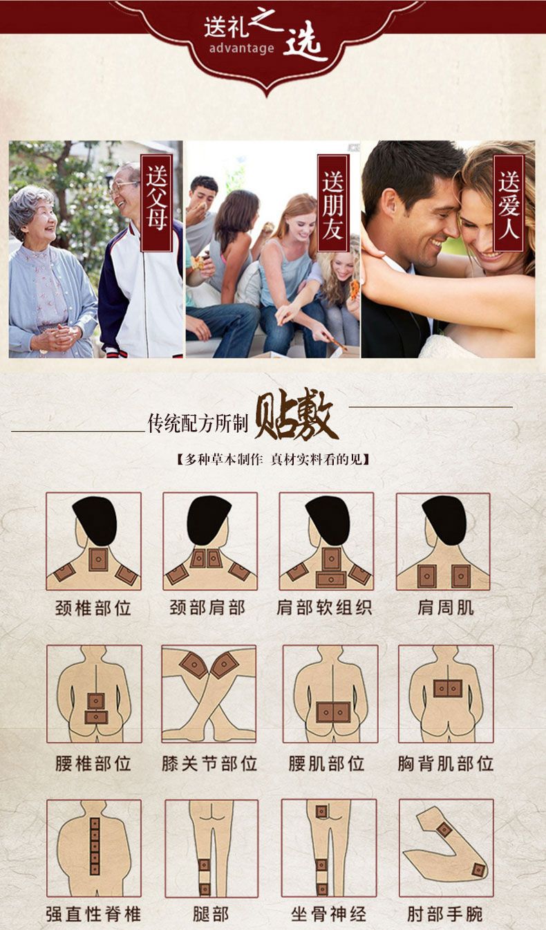 | 產(chǎn)品用途 | 適用于因肩周、頸椎、腰椎、關(guān)節(jié)、腿部疼痛不適及跌打損傷、坐骨神經(jīng)痛、滑膜積液、骨刺引起的身體不適的亞健康人群,通過貼敷不適部位或相應(yīng)的穴位,具有促進(jìn)康復(fù)和健康的作用。 |