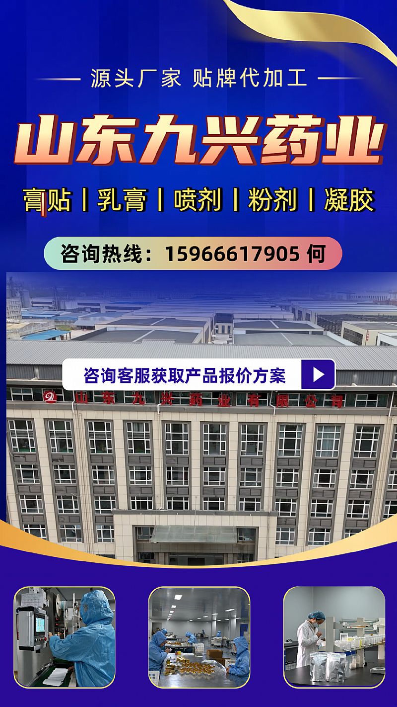 | 其它說明 | 山東九興藥業(yè)有限公司的服務(wù)范圍包括:1、來料加工?蛻籼峁┌氤善放浞、原料、包材,我方代為乳化、灌裝、 包裝:3、整體輸出。包括:商標注冊、產(chǎn)品規(guī)劃、包裝設(shè)計、包裝 采購配方開發(fā)、原料采購、生產(chǎn)配料、灌裝包裝等提供服務(wù)。山東九興藥業(yè)有限公司聯(lián)系方式:15966617905 |