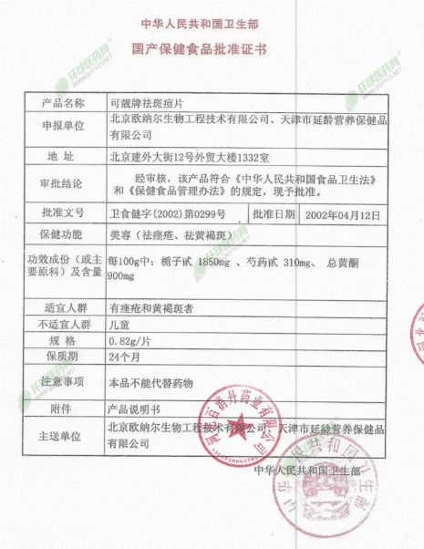 批準(zhǔn)文號: 衛(wèi)食健字2002第0299號 【驗證真?zhèn)?/a>】