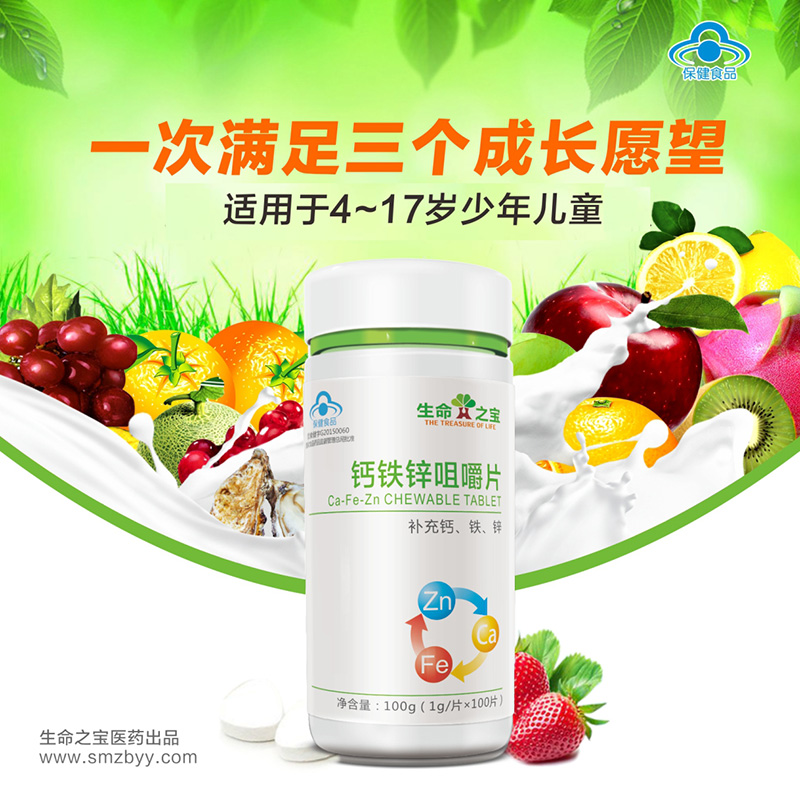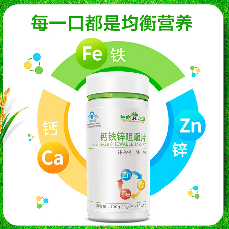 | 產(chǎn)品名稱 | 生命之寶-鈣鐵鋅咀嚼片 |